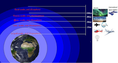 | உலங்குவானூர்தி, வீழ்காவலி, ஆகாய விமானங்கள் பயணிக்கும். | ஜெட் விமானங்கள் பயணிக்கும். | சர்வதேச விண்வெளி ஆய்வு மத்திய நிலையம் (ISS) இங்கே அமைக்கப் பட்டுள்ளது. | ||